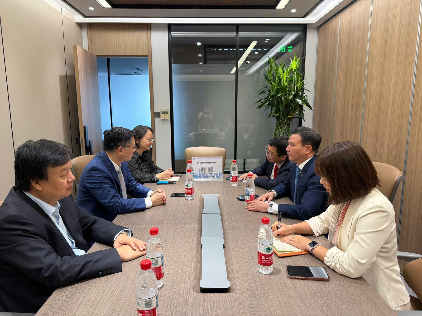 Đoàn công tác thảo luận với Giáo sư Mễ Lương – Đại học Ngoại ngữ Bắc Kinh.
