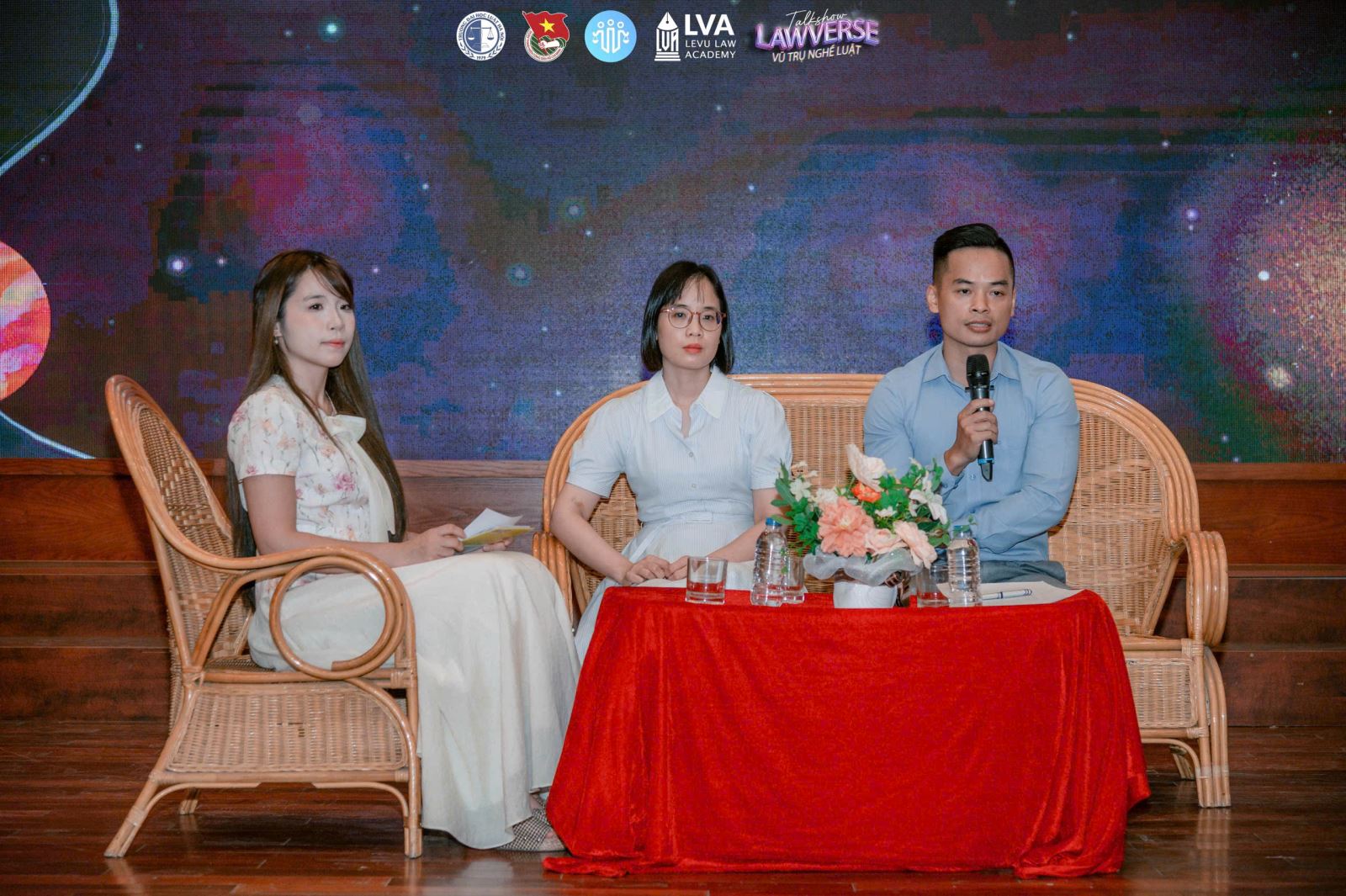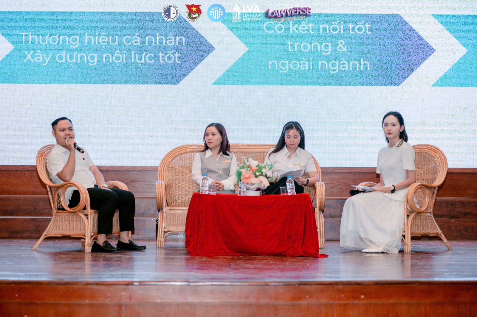 Mở đầu là Buổi toạ đàm: “Quỹ đạo luật sư”, nơi các bạn sinh viên được tiếp cận bức tranh tổng quan về nghề luật sư. Diễn giả tham gia buổi tọa đàm gồm có: Luật sư Nông Thị Thơ – Giám đốc Công ty Luật VITAM; Luật sư Phạm Văn Thảo – Giám đốc Công ty Luật TNHH Hưng Thịnh; Luật sư Trần Thị Trâm – Giám đốc Công ty Luật TNHH LEVINA. Các diễn giả đã mang đến cho chương trình không chỉ những kỹ năng chuyên môn mà một luật sư cần trau dồi, mà cả những câu chuyện trải nghiệm thú vị của chính những diễn giả.