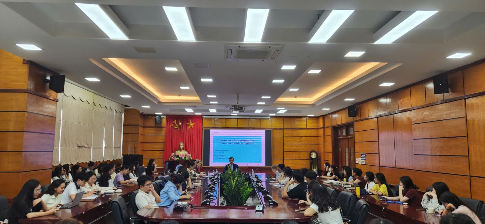 Các chuyên gia và các em sinh viên tại buổi nói chuyện về chủ đề "Milestones of an Arbitration Illustrated with Templates".