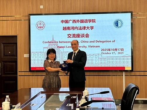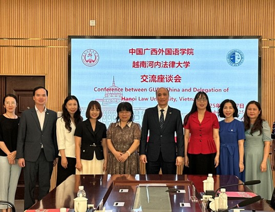 Sáng ngày 17/10/2025, Đoàn công tác của Trường Đại học Luật Hà Nội do PGS.TS. Tô Văn Hoà - Hiệu trưởng Trường Đại học Luật Hà Nội dẫn đầu đã có buổi làm việc tại Trường Đại học ngoại ngữ Quảng Tây, tọa lạc tại thành phố Nam Ninh – thủ phủ của Khu tự trị dân tộc Choang Quảng Tây. Trường Đại học ngoại ngữ Quảng Tây được thành lập từ năm 2004, là trường đại học dân lập chuyên ngành ngoại ngữ lớn nhất và duy nhất tại Tỉnh Quảng Tây với 46 chuyên ngành đào tạo ở bậc đại học, trong đó có 12 chuyên ngành ngoại ngữ. Trường có hai cơ sở đào tạo gồm cơ sở Ngũ Hợp (Wuhe) và cơ sở Không Cảng (Konggang) với tổng diện tích quy hoạch khuôn viên đạt 2.465 mẫu, với quy mô hơn 32.000 sinh viên hệ chính quy (tính đến tháng 5 năm 2025) và là trường có số lượng sinh viên chuyên ngành ngoại ngữ lớn nhất ở Quảng Tây.