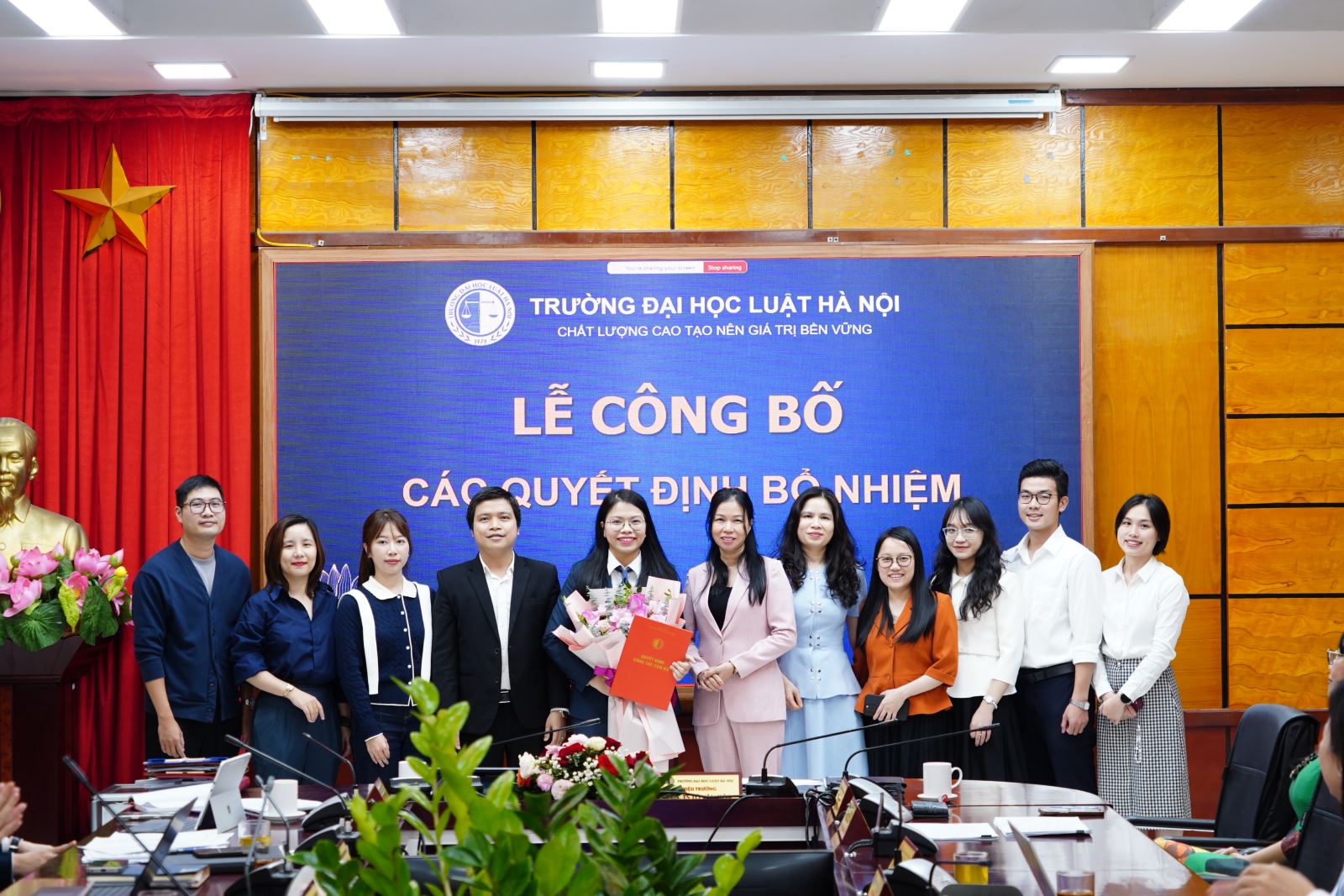 Thay mặt tập thể Lãnh đạo Trường Đại học Luật Hà Nội, PGS.TS Tô Văn Hòa, Hiệu trưởng Nhà trường, trân trọng gửi lời chúc mừng tới các đồng chí vừa được bổ nhiệm giữ chức vụ Phó Giám đốc Trung tâm, Phó Trưởng phòng Phòng, Trưởng bộ môn Bộ môn.