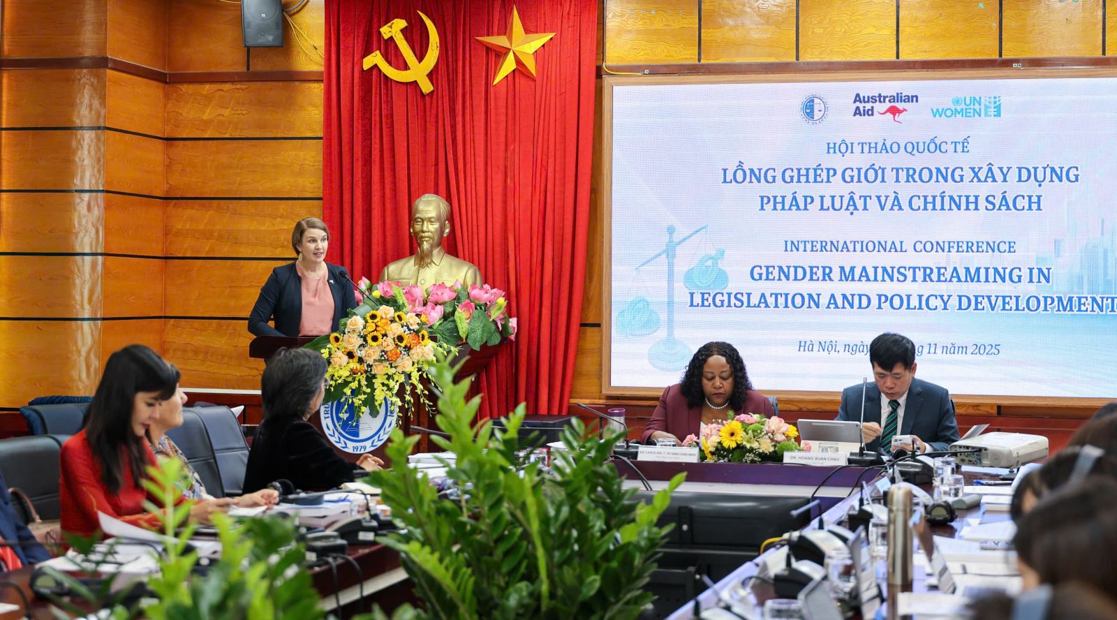 Tại Hội thảo, Bà Caroline Nyamayemomber, Trưởng Đại diện UN Women tại Việt Nam và Bà Cathy Mc William, Bí thư thứ nhất, phụ trách chương trình phát triển của Đại sứ Quán Úc đã chia sẻ về sự cần thiết của lồng ghép giới trong xây dựng chính sách và pháp luật, đã đánh giá cao các thành tựu của Việt Nam trong ban hành các văn bản luật, triển khai các chương trình nhằm đảm bảo bình đẳng giới thực chất. Bên cạnh đó, hội thảo sẽ là diễn đàn để các chuyên gia, các học giả thảo luận sâu hơn những giải pháp cần đẩy mạnh trong thời gian tới.