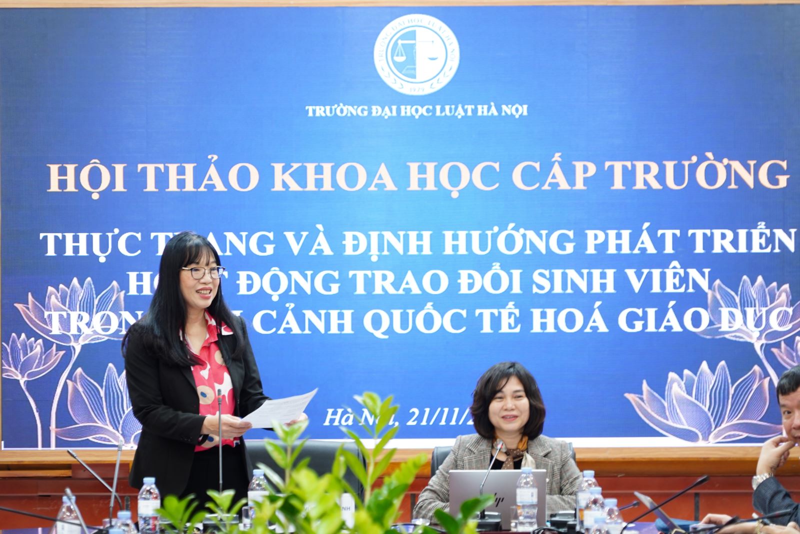 Hội thảo đã nhận được nhiều đóng góp chuyên sâu từ các đơn vị bạn. Cụ thể, Thạc sĩ Đào Thị Thu Hà (Phòng Hợp tác Quốc tế, Trường Đại học Ngoại thương) đã chia sẻ kinh nghiệm triển khai chương trình trao đổi sinh viên tại đơn vị mình. Bên cạnh đó, TS. Nguyễn Thị Hoài Thu (Viện trưởng Viện Đào tạo quốc tế, Học viện Ngân hàng) cũng trình bày kinh nghiệm triển khai chương trình trao đổi sinh viên/hoạt động hợp tác quốc tế. Những chia sẻ này đã cung cấp những góc nhìn thực tiễn và bài học quý báu cho Trường Đại học Luật Hà Nội.
