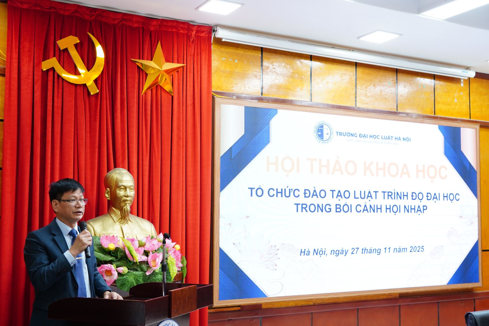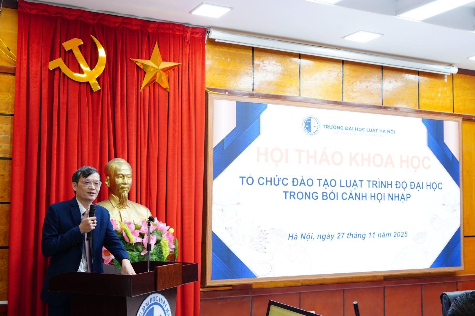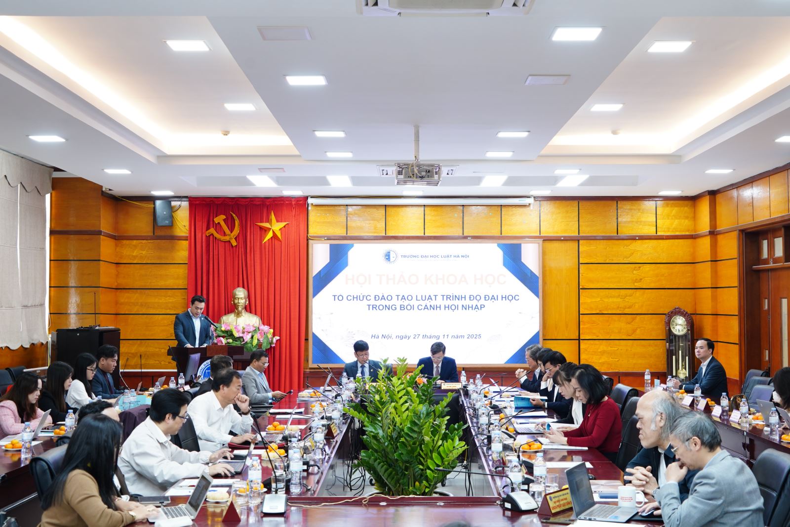 Các tham luận và ý kiến trao đổi tại Hội thảo tập trung vào nhiều nội dung trọng tâm như: thực trạng đào tạo luật trình độ đại học tại Trường Đại học Luật Hà Nội trong bối cảnh đổi mới giáo dục đại học và hội nhập quốc tế; yêu cầu của xã hội và thị trường lao động đối với sinh viên ngành luật về kiến thức chuyên môn, kỹ năng nghề nghiệp, kỹ năng mềm và năng lực ngoại ngữ pháp lý; đổi mới chương trình, phương pháp giảng dạy theo hướng tiệm cận chuẩn khu vực và quốc tế; ứng dụng công nghệ số và trí tuệ nhân tạo trong đào tạo luật; tăng cường liên kết giữa nhà trường với các cơ quan, tổ chức thực tiễn như tòa án, viện kiểm sát, cơ quan tư pháp, doanh nghiệp và các tổ chức hành nghề luật; đồng thời phân tích kinh nghiệm quốc tế, rút ra bài học phù hợp với điều kiện của Việt Nam.