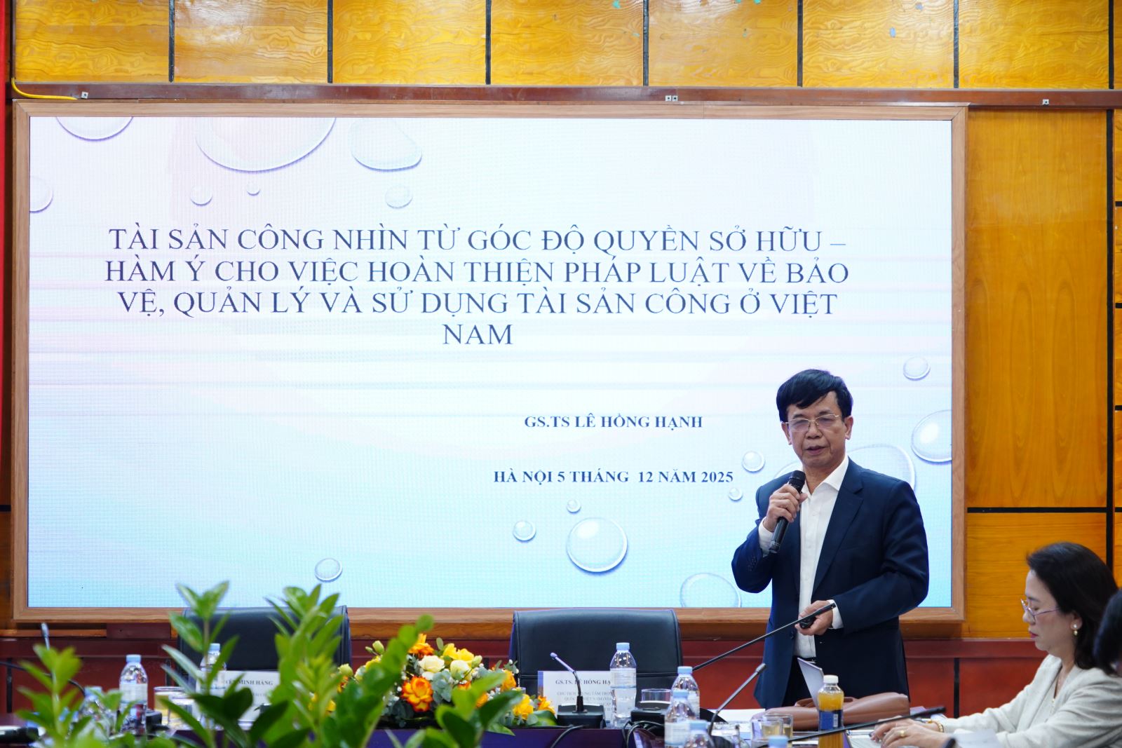 Phát biểu tổng kết, GS.TS. Lê Hồng Hạnh và PGS.TS. Nguyễn Thị Nga đánh giá cao sự trao đổi sôi nổi, chuyên sâu của các đại biểu, đồng thời nhấn mạnh hội thảo không chỉ góp phần nâng cao nhận thức mà còn là bước đi quan trọng để đề xuất hoàn thiện khung pháp lý về quản lý, sử dụng tài sản công trong bối cảnh đổi mới quản trị nhà nước và hội nhập quốc tế.