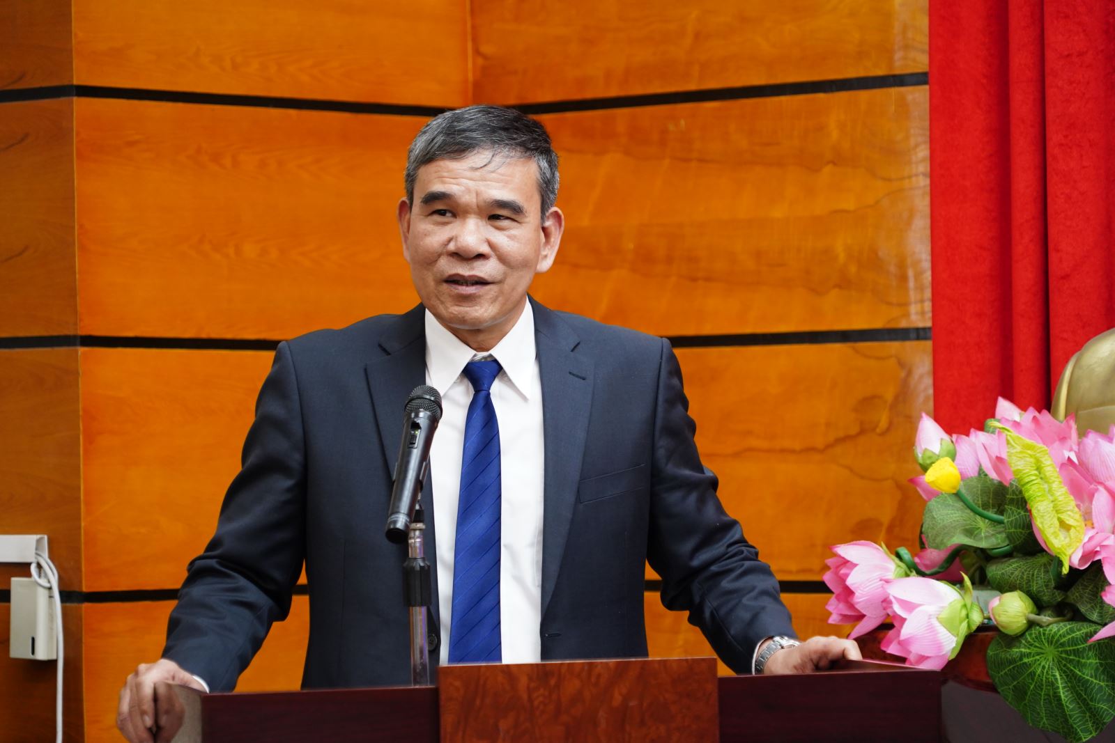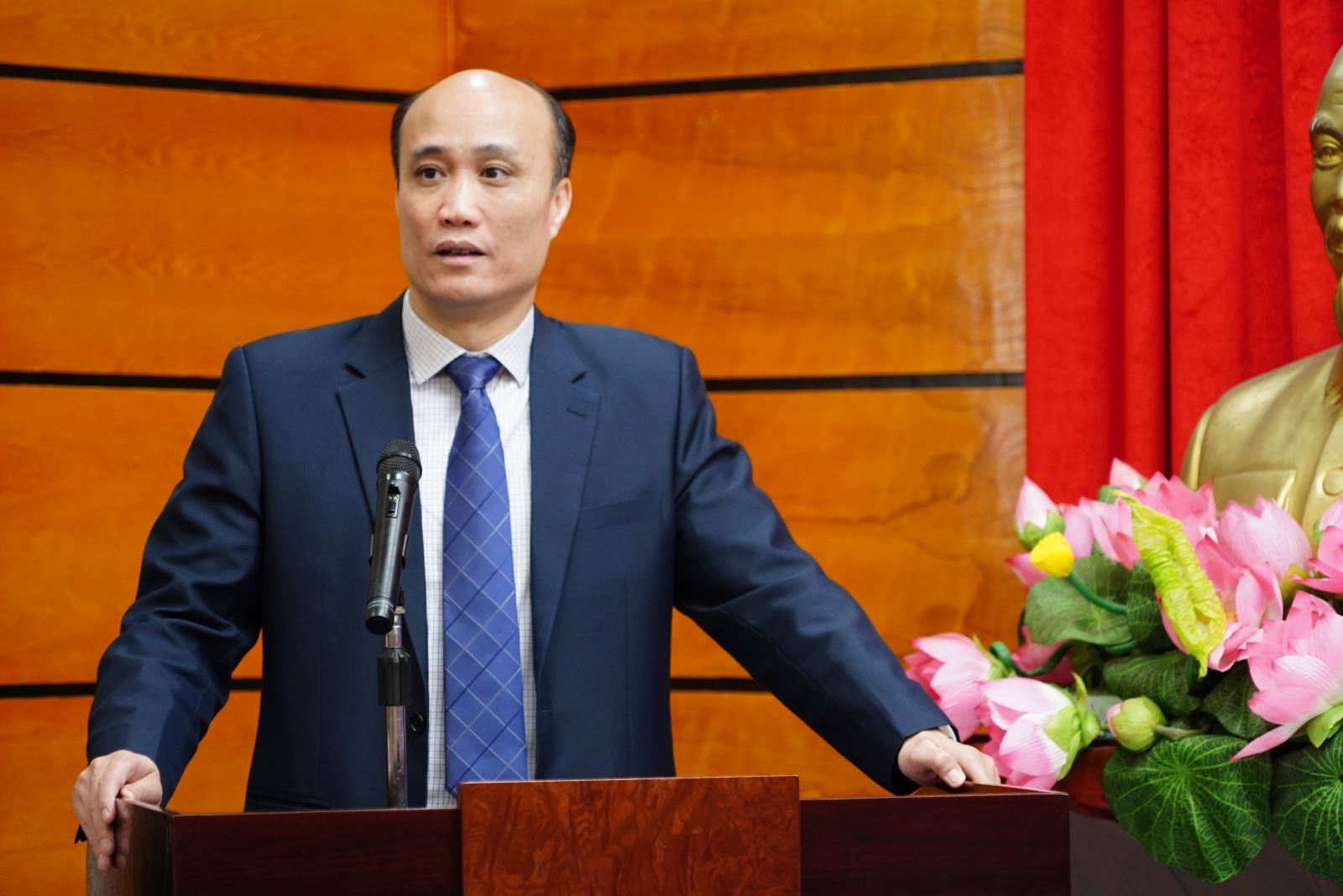 Ông Nguyễn Văn Hương, Phó Trưởng phòng Phòng Đào tạo sau đại học phát biểu tại buổi lễ.