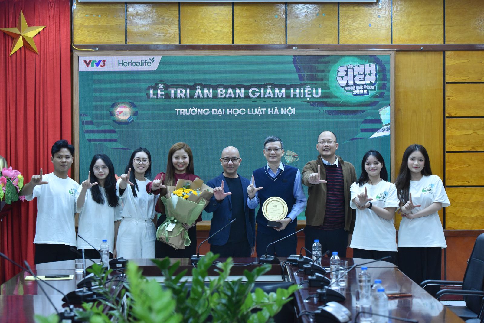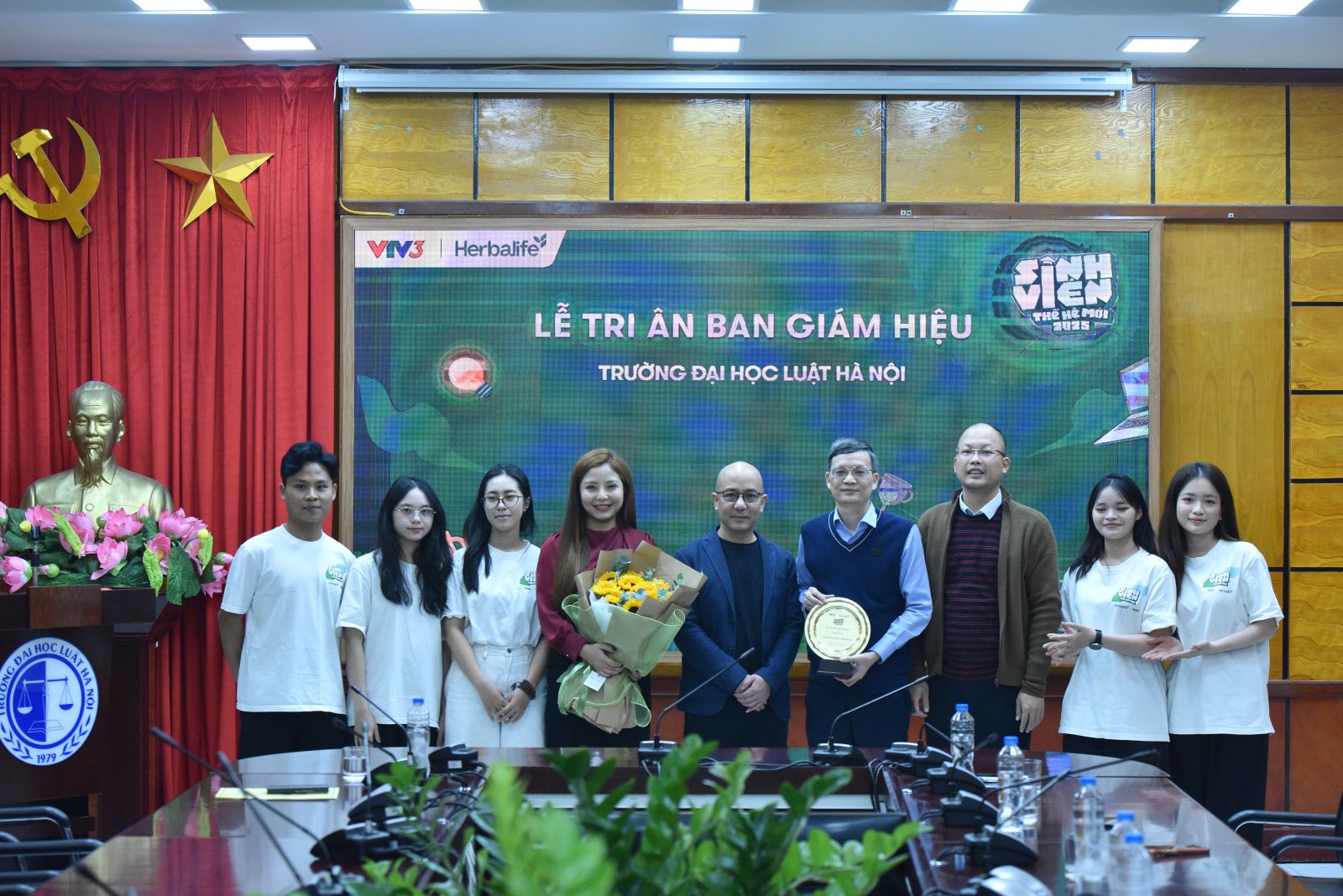 Đại diện lãnh đạo Nhà trường, ban Văn hóa - Giái trí Đài Truyền hình Việt Nam và đội thi của Trường Đại học Luật Hà Nội cùng nhau chụp ảnh lưu niệm tại buổi lễ.