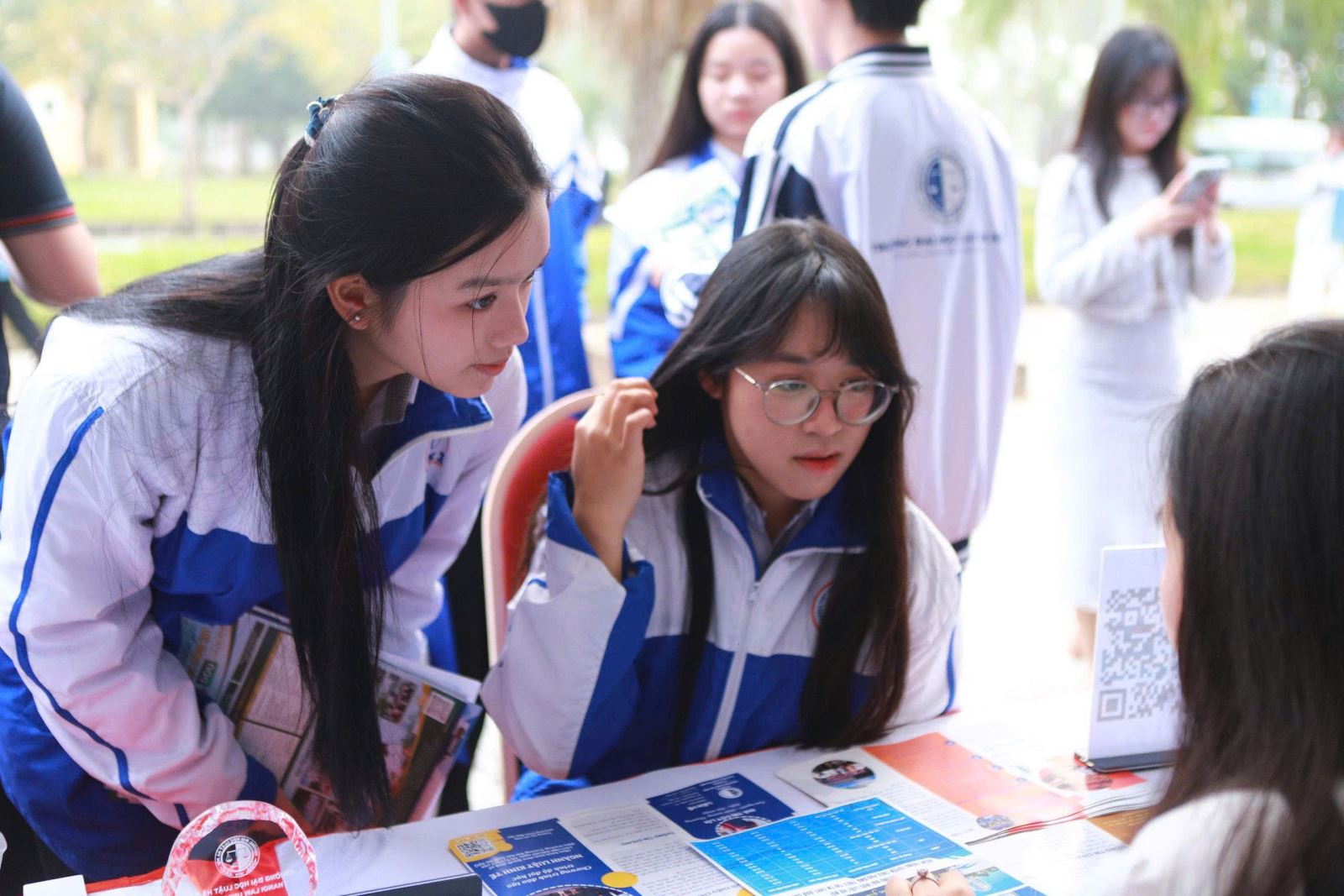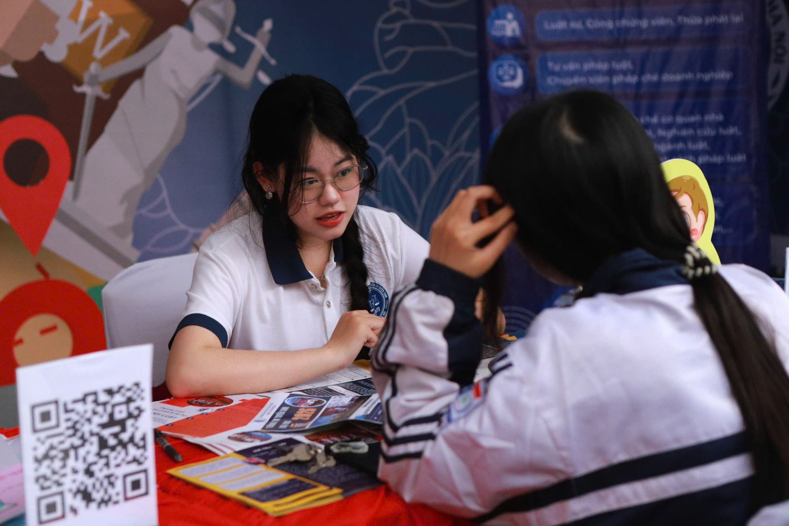 Song song với phiên tư vấn chung, chương trình còn bố trí hơn 100 gian tư vấn của các cơ sở đào tạo trên cả nước. Tại gian tư vấn của Trường Đại học Luật Hà Nội, Ban tuyển sinh đã trực tiếp giới thiệu tới học sinh và phụ huynh các thông tin mới nhất về chỉ tiêu, phương thức tuyển sinh năm 2026, các ngành đào tạo, chương trình chất lượng cao, môi trường học tập, học phí, học bổng và cơ hội việc làm sau tốt nghiệp. Nhiều học sinh bày tỏ sự quan tâm tới các ngành đào tạo luật trong bối cảnh yêu cầu về hiểu biết pháp luật và kỹ năng pháp lý ngày càng cao trong xã hội hiện đại.