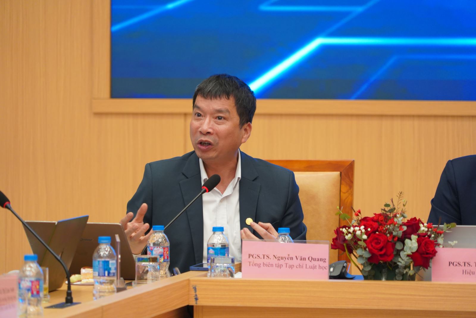 PGS.TS Nguyễn Văn Quang, Tổng biên tập Tạp chí Luật học trình bày tham luận.