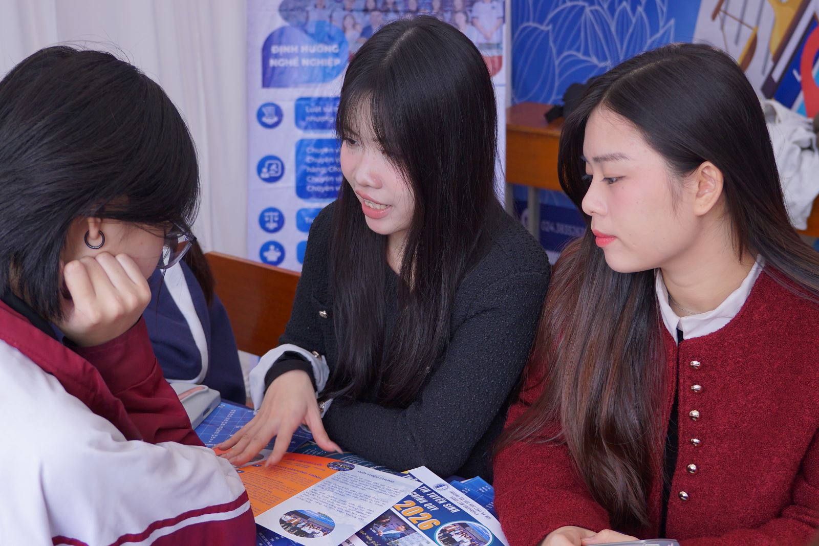 Chương trình diễn ra trong không khí sôi nổi, cởi mở, thu hút sự quan tâm và tham gia đông đảo của học sinh cùng phụ huynh. Tại buổi tư vấn, Ban tư vấn tuyển sinh của Trường Đại học Luật Hà Nội đã cung cấp những thông tin đầy đủ, cập nhật về đề án tuyển sinh năm 2026; giới thiệu các ngành đào tạo, phương thức xét tuyển, cũng như những yêu cầu, tố chất phù hợp với từng lĩnh vực học tập.