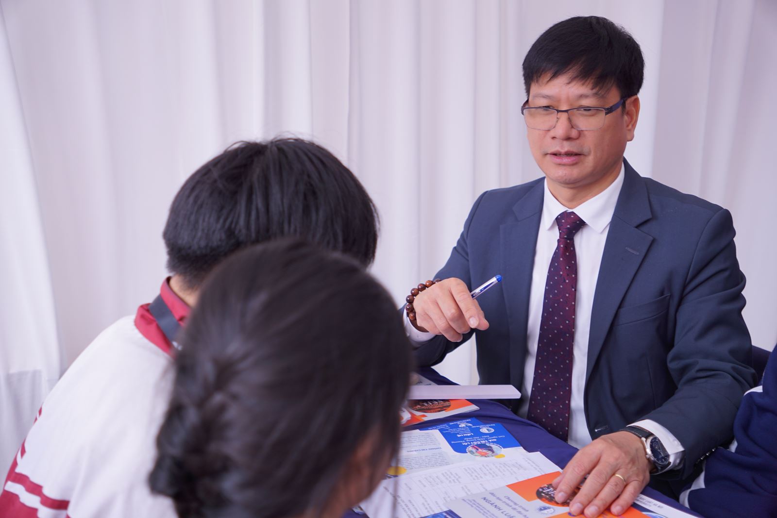 TS. Nguyễn Triều Dương, Trưởng phòng Phòng Đào tạo sau đại học giải thích thắc mắc của các em học sinh.
