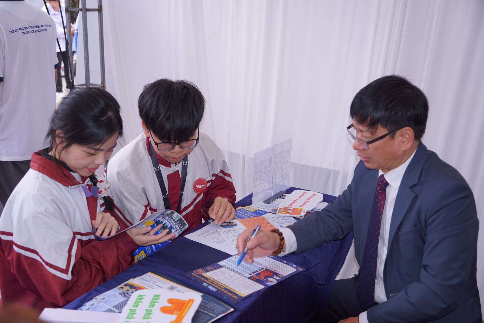 Bên cạnh đó, các thắc mắc của học sinh và phụ huynh liên quan đến cơ hội nghề nghiệp sau khi tốt nghiệp, môi trường học tập, rèn luyện tại Trường Đại học Luật Hà Nội đã được giải đáp tận tình, góp phần giúp các em định hướng rõ ràng hơn cho lựa chọn ngành nghề và con đường học tập trong tương lai.