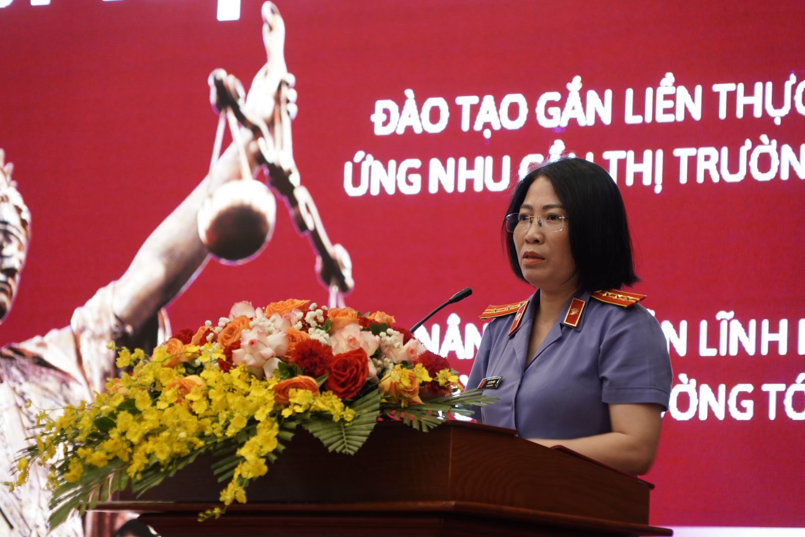 Đồng chí Lưu Thị Vinh, Phó Viện trưởng Viện kiểm sát nhân dân khu vực 2 – Hà Nội, nhấn mạnh yêu cầu tăng cường khả năng áp dụng văn bản quy phạm pháp luật vào thực tiễn. Theo đồng chí, sinh viên cần được rèn luyện kỹ năng hệ thống hóa, lưu trữ và tổng hợp các quy định pháp luật để tránh lúng túng khi xử lý công việc thực tế.