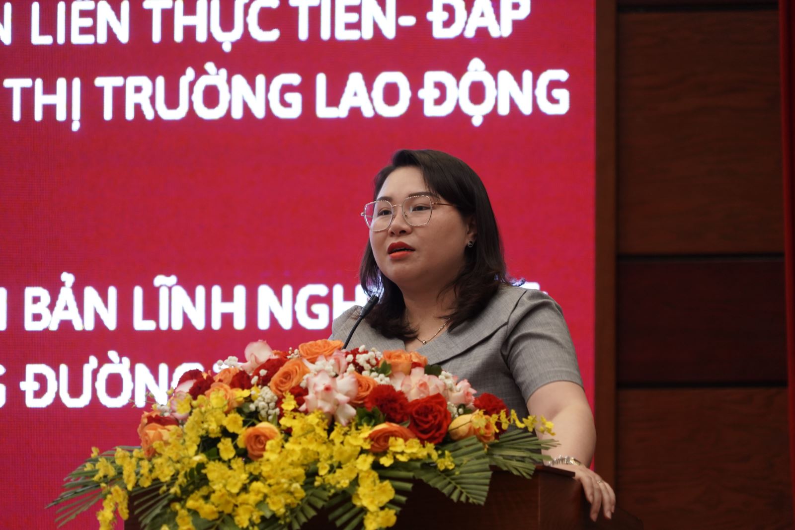 Đồng chí Vương Thùy Dương, Chánh Văn phòng Tòa án nhân dân khu vực 2 – Hà Nội phát biểu tại Hội nghị.