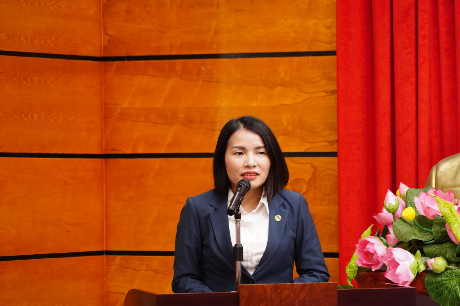 Bà Nguyễn Hoàng Lan, Phó Tổng biên tập Tạp chí Luật học phát biểu tại buổi lễ.