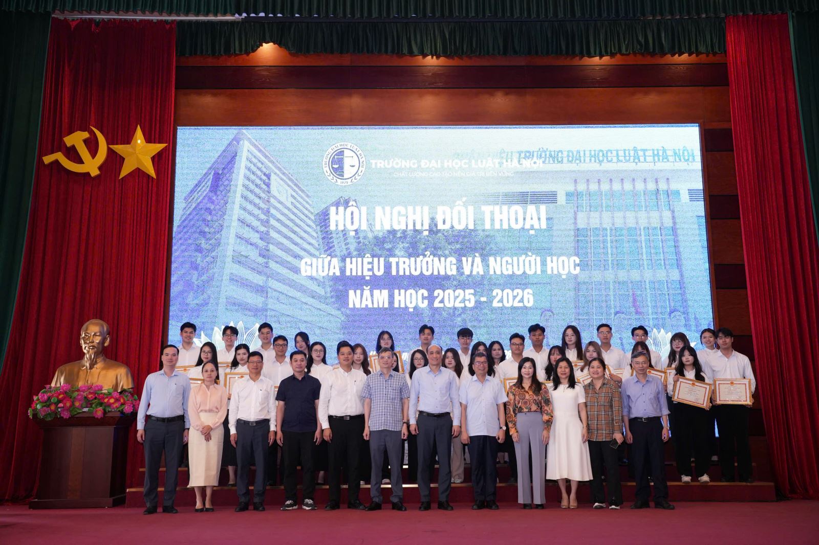 Thực hiện kế hoạch công tác năm học 2025–2026, Trường Đại học Luật Hà Nội đã tổ chức Chương trình đối thoại giữa Hiệu trưởng và người học.