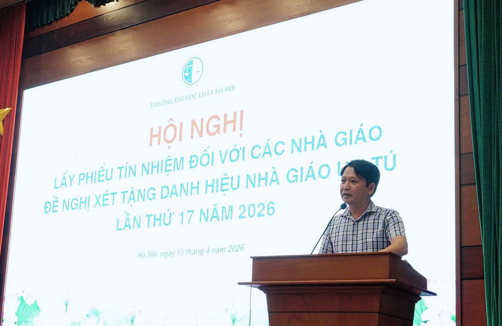 Chiều ngày 15/4/2026, Trường Đại học Luật Hà Nội đã tổ chức Hội nghị lấy phiếu tín nhiệm đối với các cá nhân được đề nghị xét tặng danh hiệu Nhà giáo Ưu tú lần thứ 17. Hoạt động được triển khai nhằm phát huy tinh thần dân chủ, tạo điều kiện để tập thể viên chức, người lao động trong Nhà trường thể hiện sự đồng thuận, ghi nhận những đóng góp bền bỉ và nổi bật của các nhà giáo tiêu biểu trong quá trình xây dựng và phát triển.