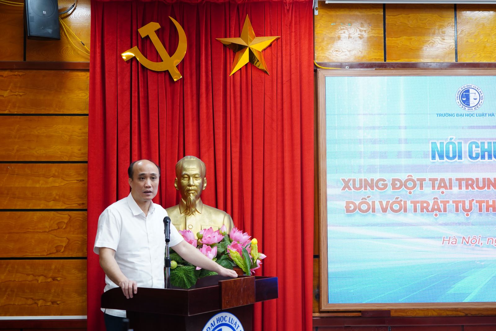 Sáng ngày 23/4/2026, tại Hội trường A402, Trường Đại học Luật Hà Nội đã phối hợp cùng Hội đồng Hòa bình và Phát triển Việt Nam tổ chức thành công Buổi nói chuyện chuyên đề “Xung đột tại Trung Đông: tác động và hệ luỵ đối với trật tự thế giới và luật pháp quốc tế”.