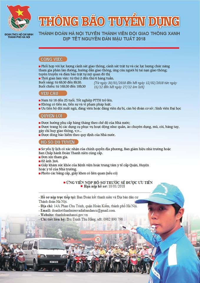 Thông báo tuyển thành viên đội hình Giao thông xanh dịp Tết Nguyên đán